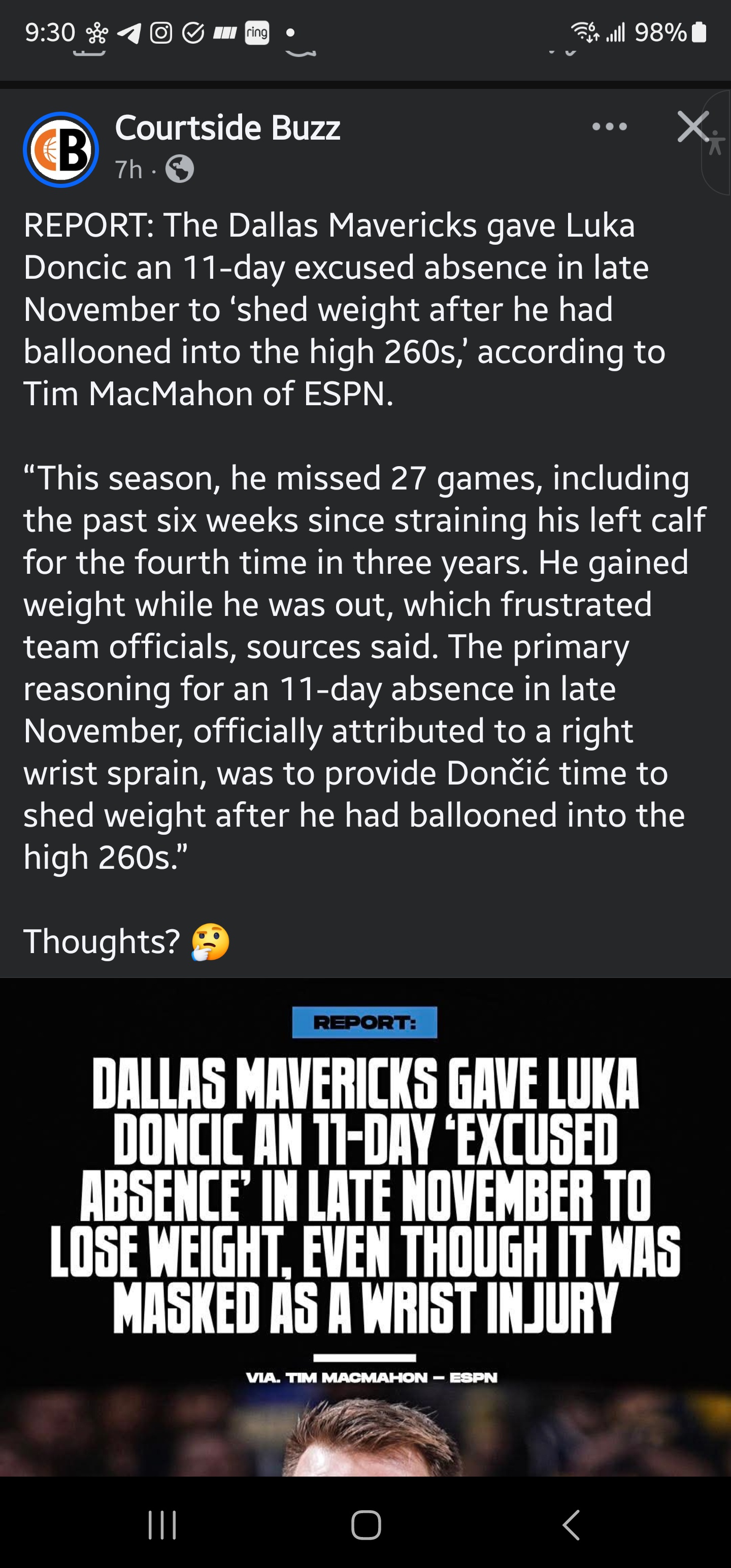 Only saw the ESPN version of this but sounds like the Mavs were done trying to get Luka to stay in shape and were not going to give him a monster contract next year. Conditioning concerns and the injuries that go with them.