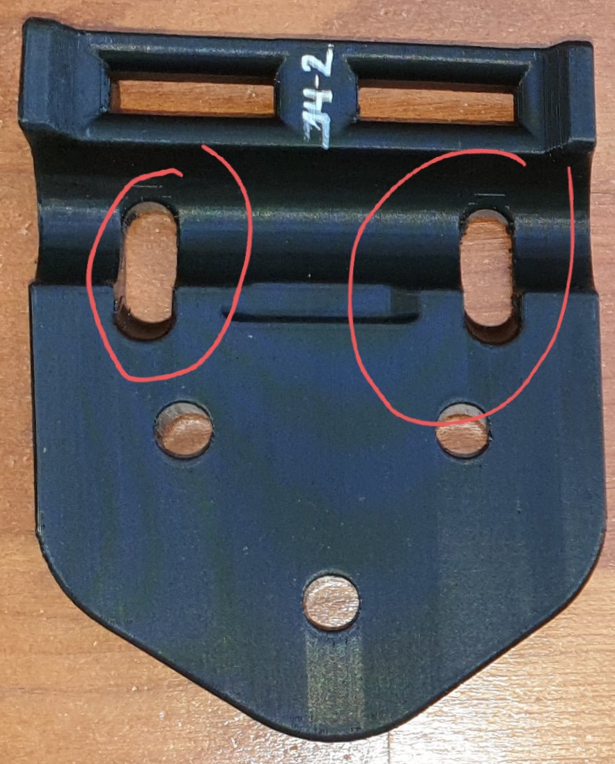 The two-sided cut-out is marked in red in the following picture. Similiar, but much smaller, on my 2nd bracket.